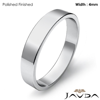 Simple Plain Flat Pipe Cut 4mm Mens Wedding Band 18k W Gold 3.7g 4"