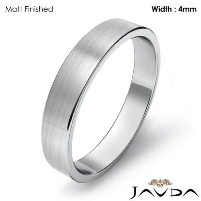 3.7 gram Men's 18k Gold White Solid Wedding Band. Flat style band. Ring Size is 4". Width is 4mm. Available in high polish and matt finish.