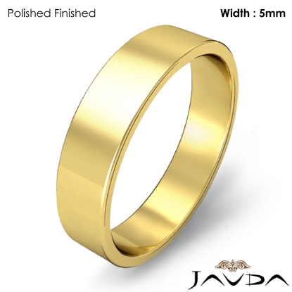 4.8 gram Men's 18k Gold Yellow Solid Wedding Band. Flat style band. Ring Size is 4". Width is 5mm. Available in high polish and matt finish.