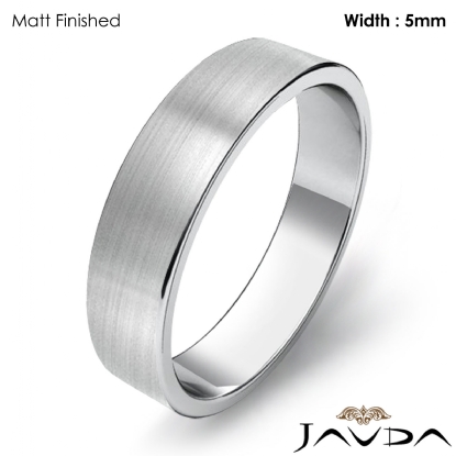 6.3 gram Men's Platinum 950 Solid Wedding Band. Flat style band. Ring Size is 4". Width is 5mm. Available in high polish and matt finish.