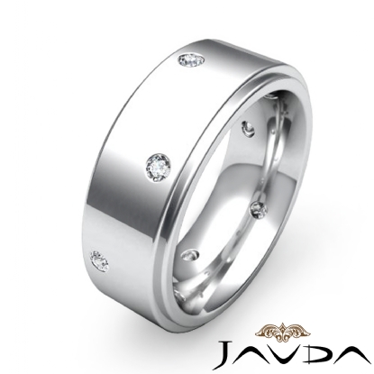 Flat Edge Men's Round Bezel Diamond Eternity Wedding Band Platinum (0.24Ct. tw.)