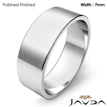 9.2 gram Men's Platinum 950 Solid Wedding Band. Flat style band. Ring Size is 4". Width is 7mm. Available in high polish and matt finish.