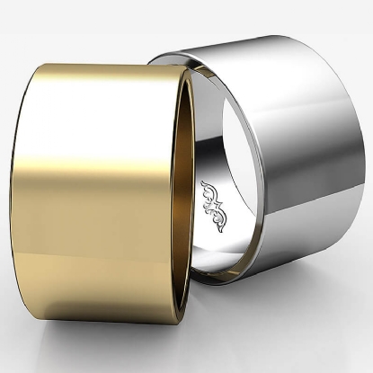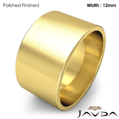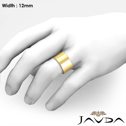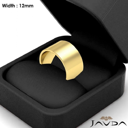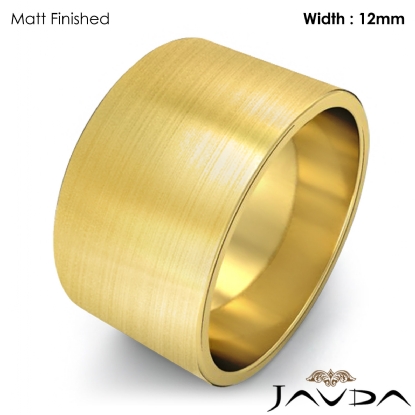11.2 gram Men's 18k Gold Yellow Solid Wedding Band. Flat style band. Ring Size is 4". Width is 12mm. Available in high polish and matt finish.