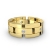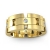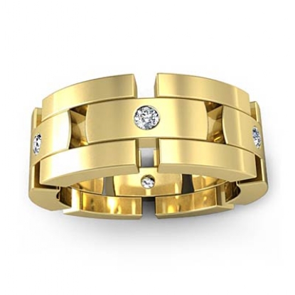 The elegant and stylish block link round diamond men's eternity wedding band is crafted in 18k Gold Yellow. This wedding ring displays an polished block link design with round diamonds in a bezel setting.
