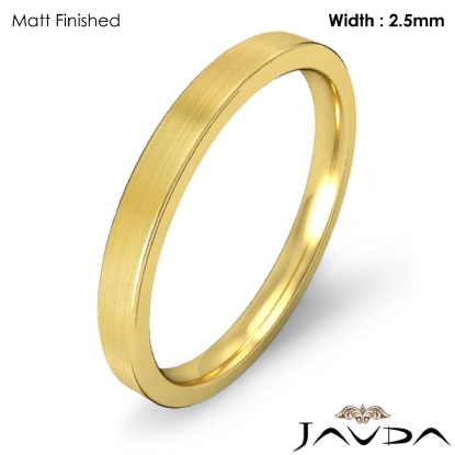 3.2 gram Men's 18k Gold Yellow Solid Wedding Band. Flat style confort-fit band. Ring Size is 4". Width is 2.5mm. Available in high polish and matt finish.