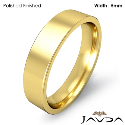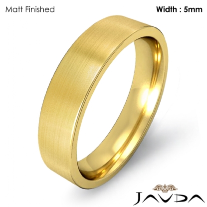 6.1 gram Men's 18k Gold Yellow Solid Wedding Band. Flat style confort-fit band. Ring Size is 4". Width is 5mm. Available in high polish and matt finish.