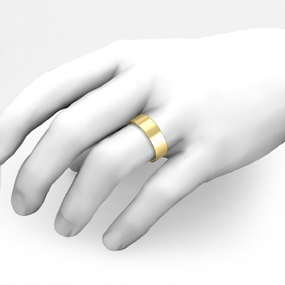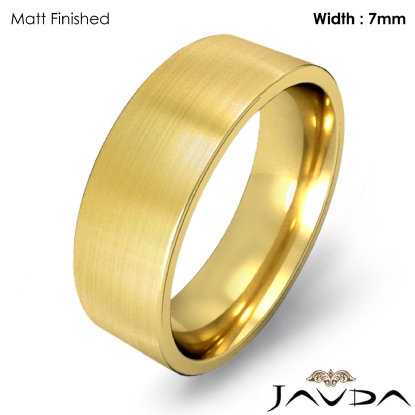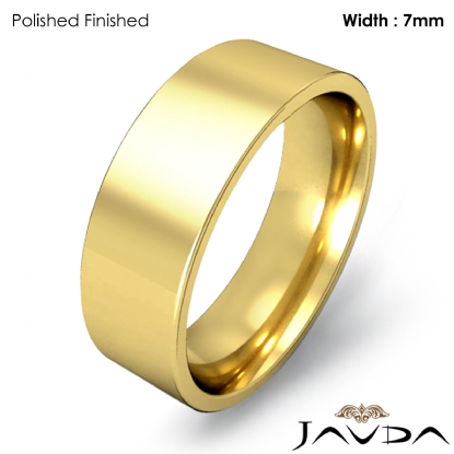 7.2 gram Men's 14k Gold Yellow Solid Wedding Band. Flat style confort-fit band. Ring Size is 4". Width is 7mm. Available in high polish and matt finish.