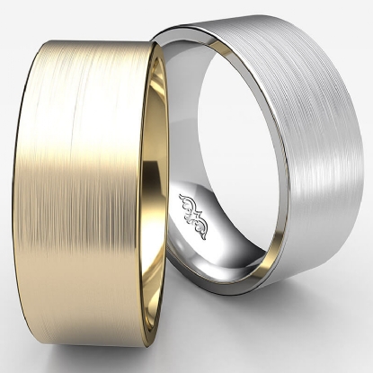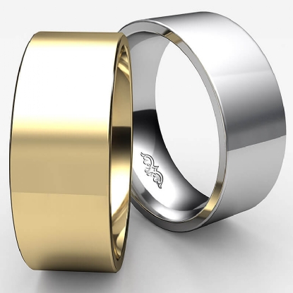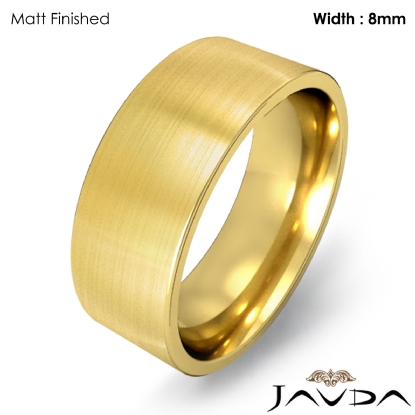 9.5 gram Men's 18k Gold Yellow Solid Wedding Band. Flat style confort-fit band. Ring Size is 4". Width is 8mm. Available in high polish and matt finish.