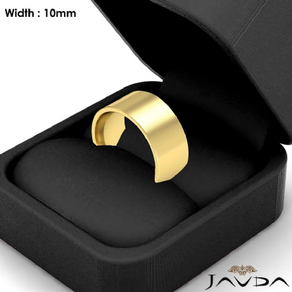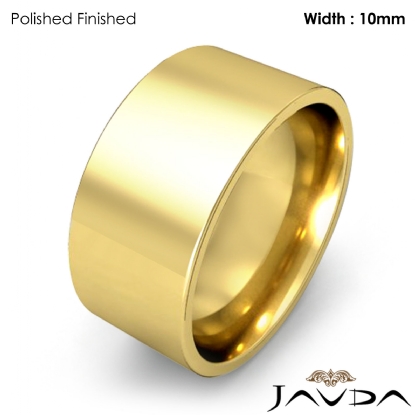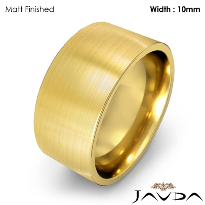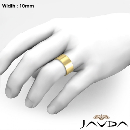 10.2 gram Men's 14k Gold Yellow Solid Wedding Band. Flat style confort-fit band. Ring Size is 4". Width is 10mm. Available in high polish and matt finish.