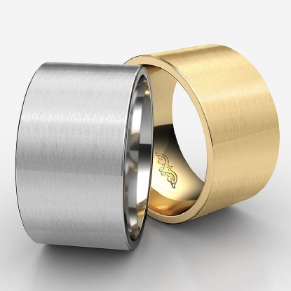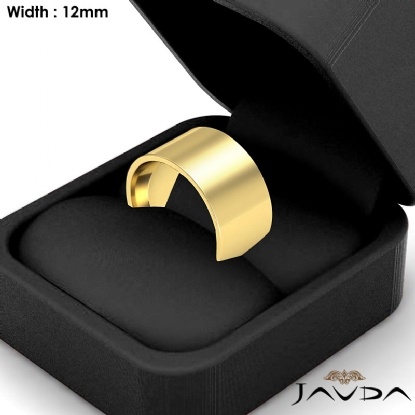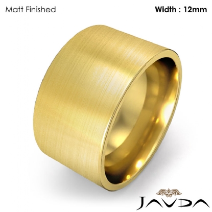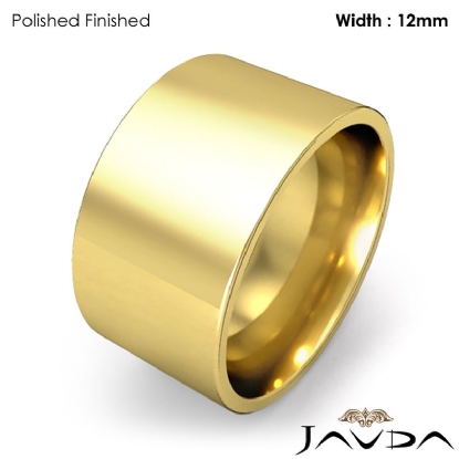 14.1 gram Men's 18k Gold Yellow Solid Wedding Band. Flat style confort-fit band. Ring Size is 4". Width is 12mm. Available in high polish and matt finish.