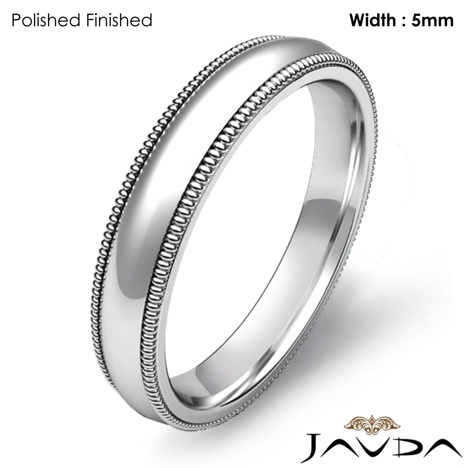 Solid Men Wedding Ring Dome Milgrain Plain Band 5mm Platinum 8.9g 5"