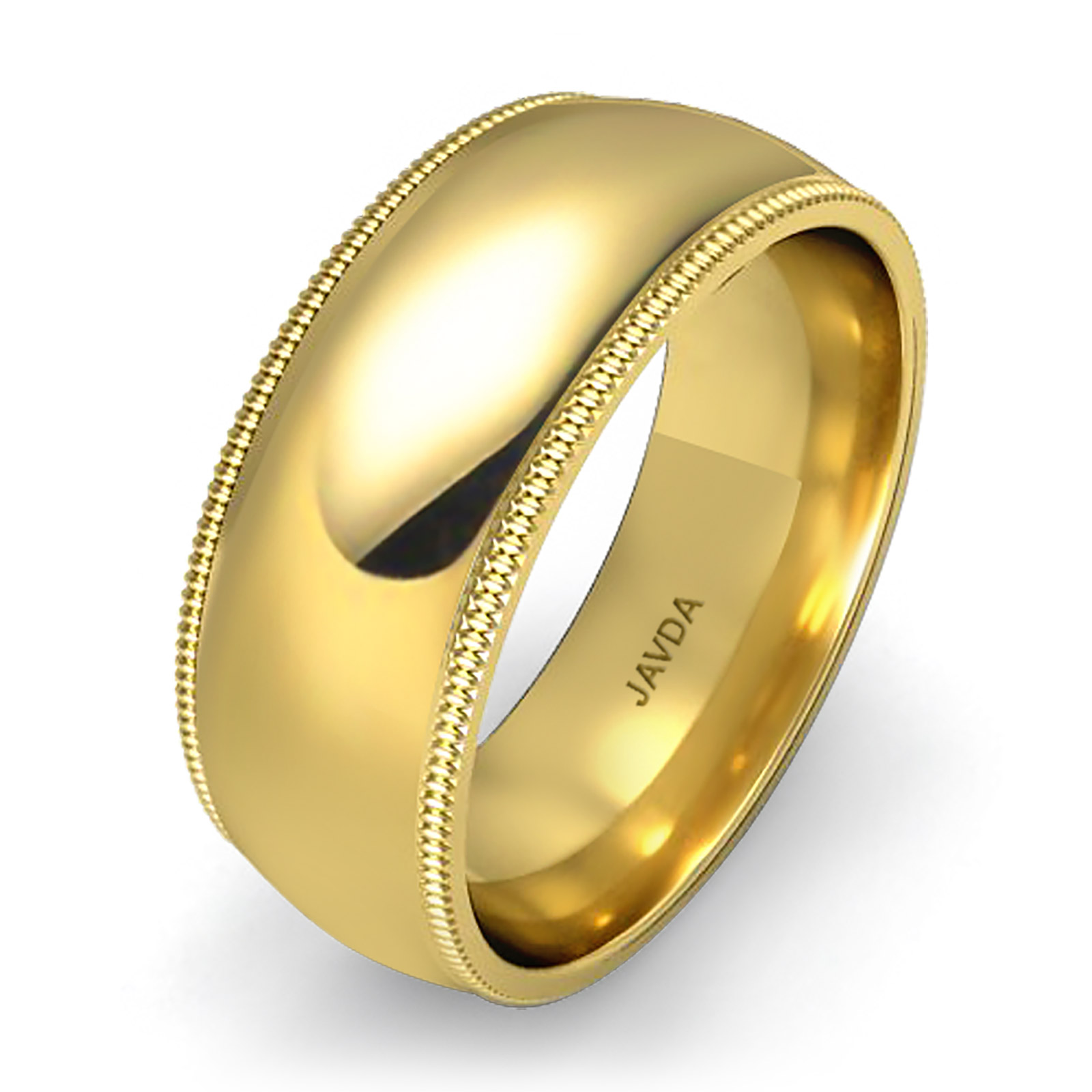 Plain Men Wedding Band Dome Milgrain Solid Ring 8mm 14k Gold 8.9g 5"