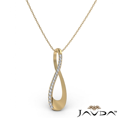Affordable diamond infinity pendant necklace made in 14k Gold Yellow. This stylish infinity symbol pendant features round diamonds in micro pave setting and 18 inch rolo chain.
