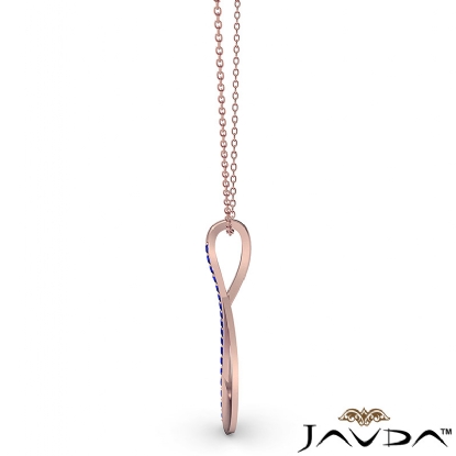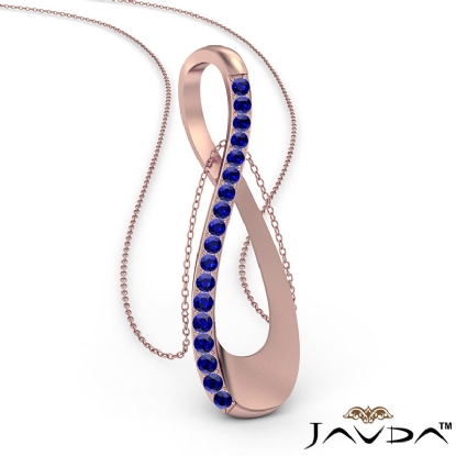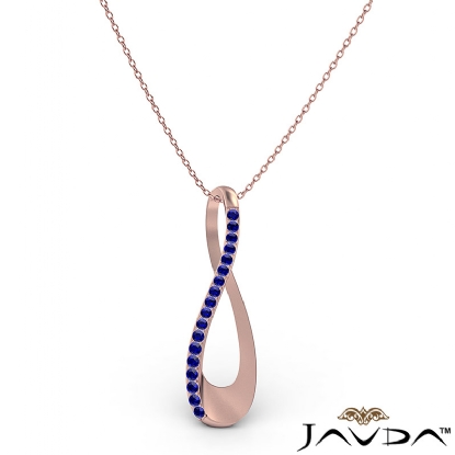 Affordable gemstone infinity pendant necklace made in 14k Rose Gold. This stylish infinity symbol pendant features round sapphire gemstone in micro pave setting and 18 inch rolo chain.