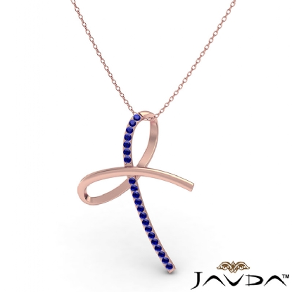 Simple Bow Pendant Necklace 18 Inch Chain 14k Rose Gold Round Sapphire (0Ct. tw.)