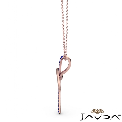 Simple and elegant sapphire bow pendant necklace crafted in 14k Rose Gold. This charming pendant features tiny round sapphire gemstone adorn in micro pave setting with 18 inch rolo chain.