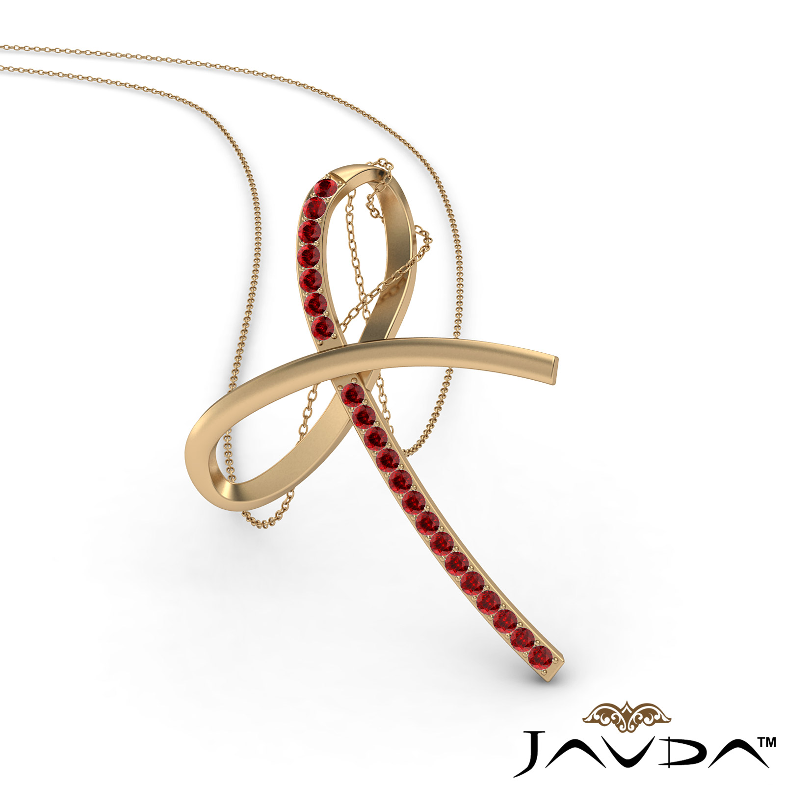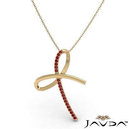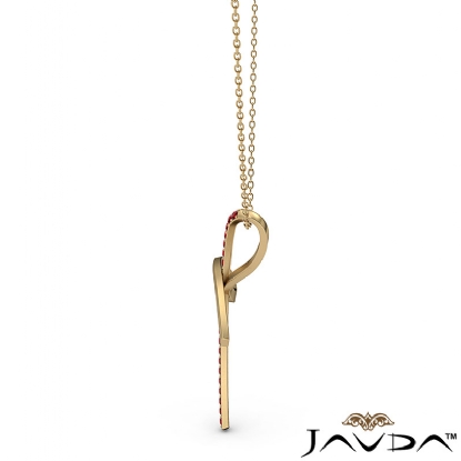 Simple and elegant ruby bow pendant necklace crafted in 18k Gold Yellow. This charming pendant features tiny round ruby gemstone adorn in micro pave setting with 18 inch rolo chain.