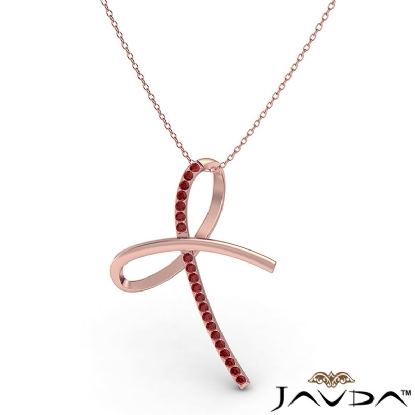 Simple Bow Pendant Necklace 18 Inch Chain 14k Rose Gold Round Ruby (0Ct. tw.)