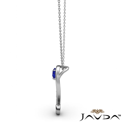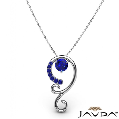 Stylish graduated sapphire pendant necklace made in polished finish 18k Gold White. This sophisticated designer pendant features round sapphire gemstone gradually set in a micro pave with 18 inch rolo chain.