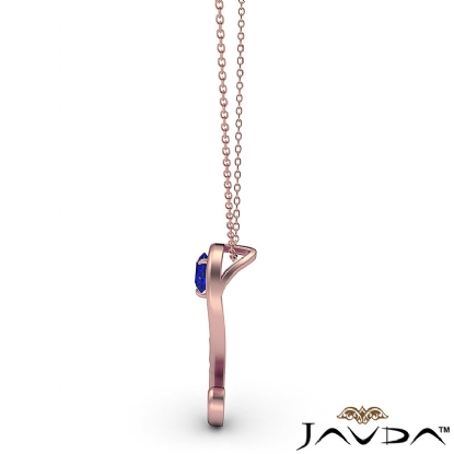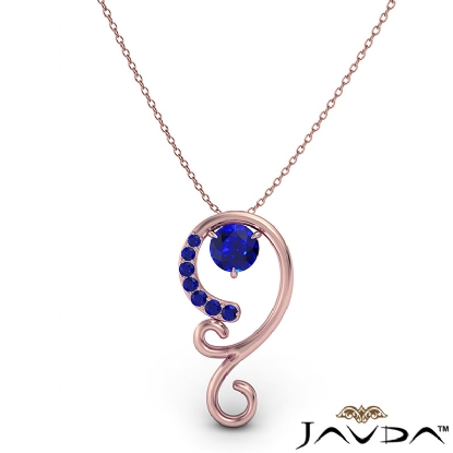 Stylish graduated sapphire pendant necklace made in polished finish 14k Rose Gold. This sophisticated designer pendant features round sapphire gemstone gradually set in a micro pave with 18 inch rolo chain.