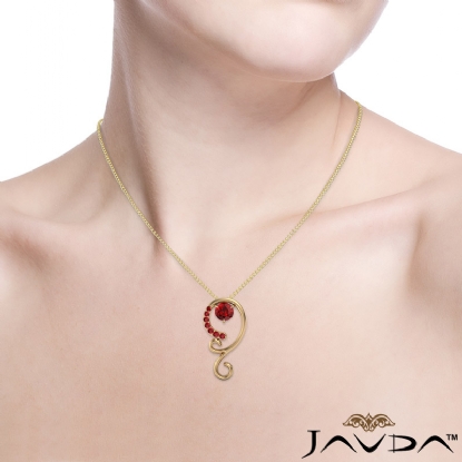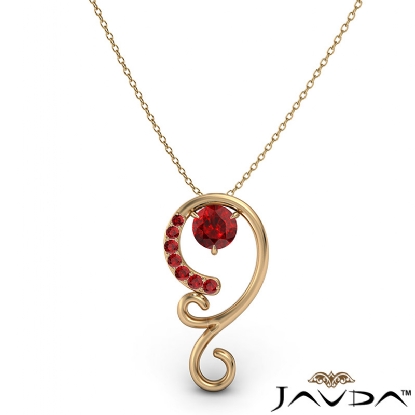 Stylish graduated ruby pendant necklace made in polished finish 14k Gold Yellow. This sophisticated designer pendant features round ruby gemstone gradually set in a micro pave with 18 inch rolo chain.