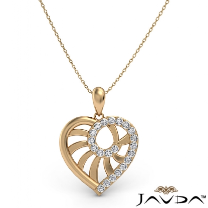 Stunning swirl heart pendant necklace crafted in 14k Gold Yellow. Features round diamonds one side of the heart in a micro pave setting with glimmering 18 inch rolo chain that secures with a spring ring clasp.