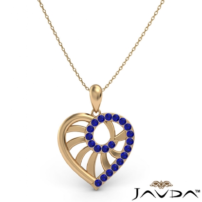 Stunning swirl heart pendant necklace crafted in 14k Gold Yellow. Features round sapphire gemstone one side of the heart in a micro pave setting with glimmering 18 inch rolo chain that secures with a spring ring clasp.