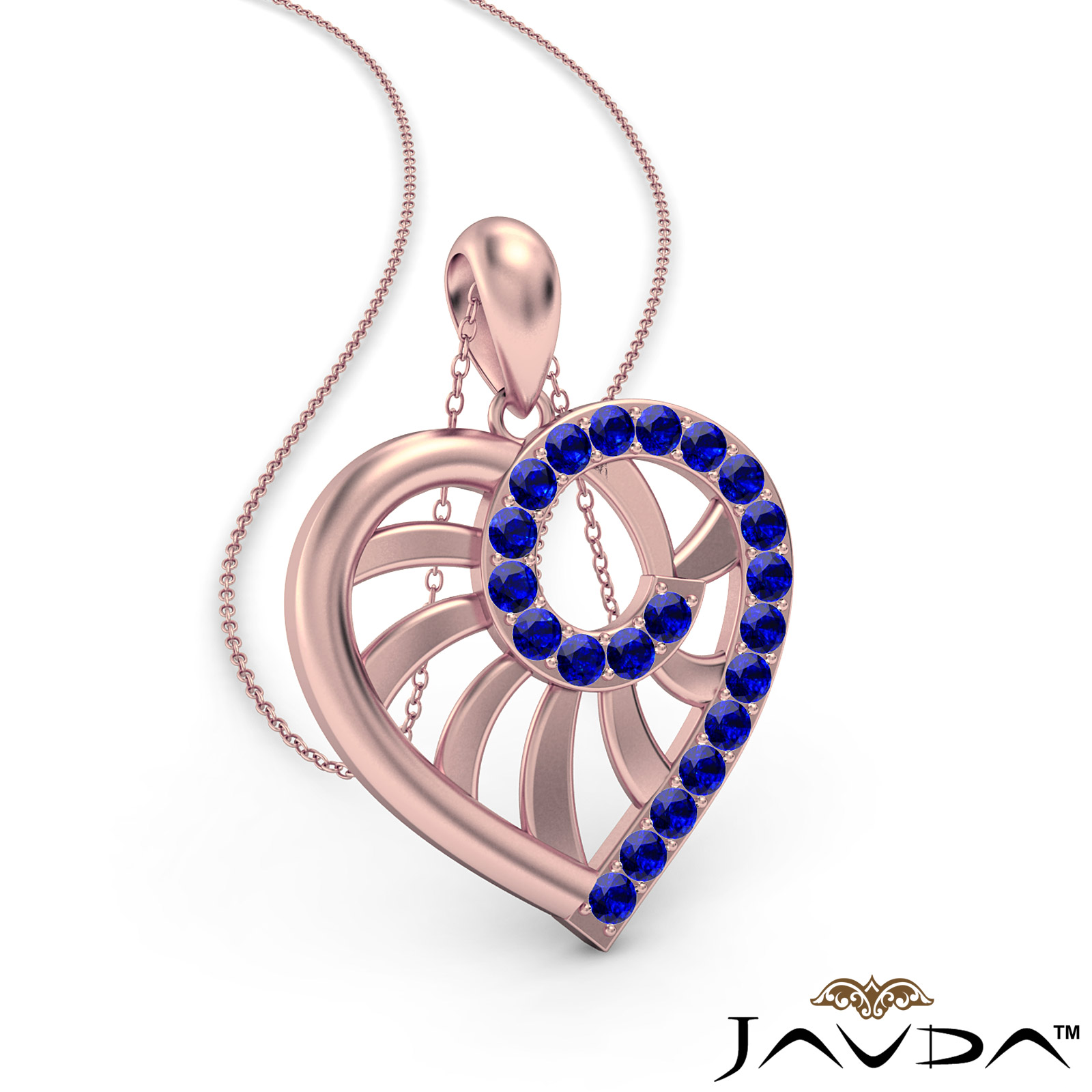Swirl Heart Pendant Necklace 18k Rose Gold 18 Inch Chain Sapphire (0Ct. tw.)