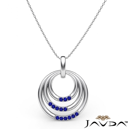 A sparkling triple circle pendant necklace crafted in Platinum 950. This modern pendant features round sapphire gemstone in a micro pave setting with 18 inch rolo chain that secures with a spring ring clasp.