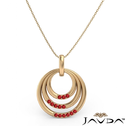 Triple Circle Pendant Necklace 18 Inch Chain In 14k Gold Ruby (0Ct. tw.)