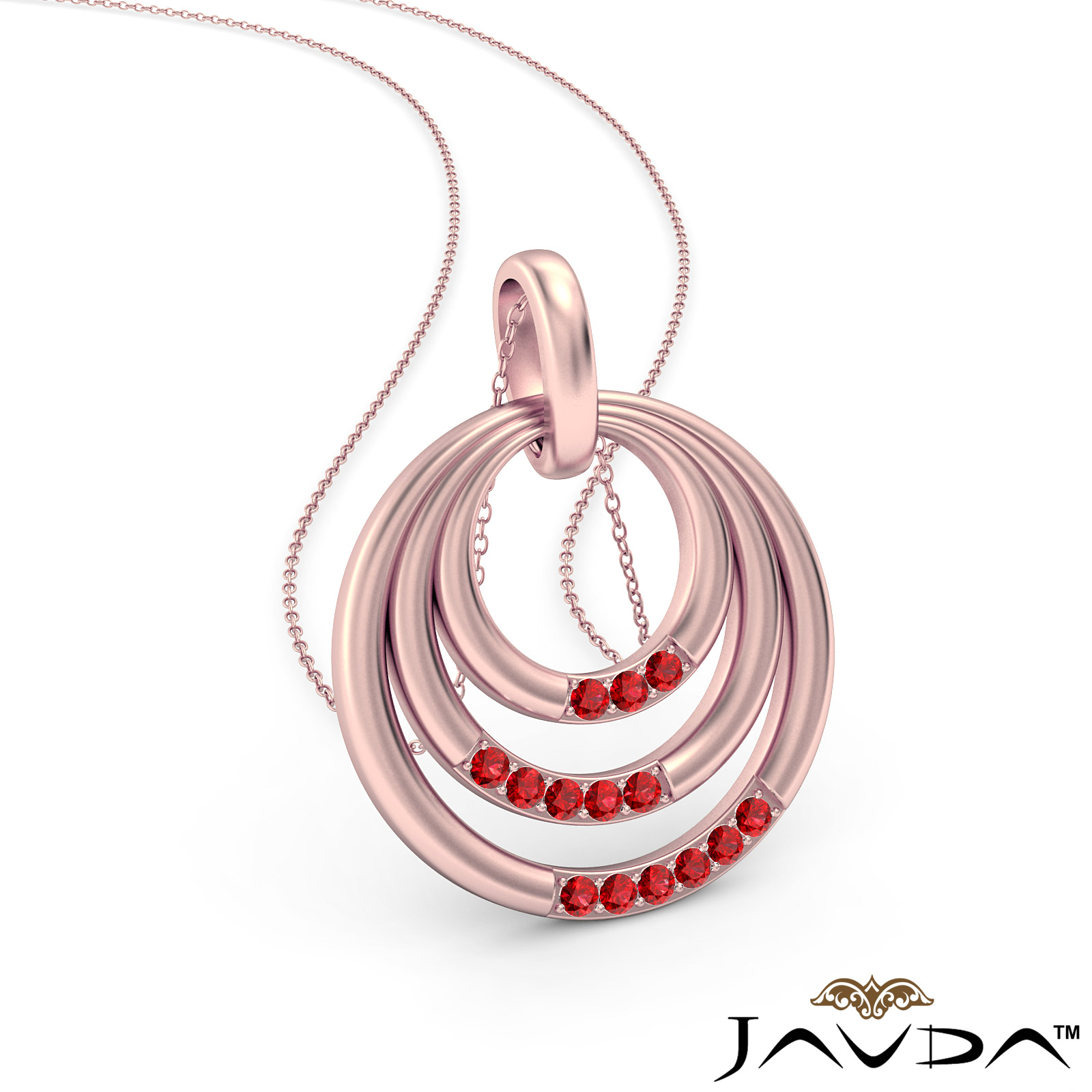 Triple Circle Pendant Necklace 18 Inch Chain In 18k Rose Gold Ruby (0Ct. tw.)