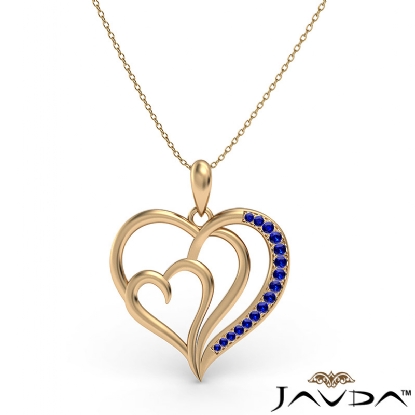 Expertly crafted this triple heart pendant necklace in 14k Gold Yellow. This beautiful pendant adorn with shimmering round sapphire gemstone gradually set in a micro pave setting hang on 18 inch rolo chain that secures with a spring ring clasp.