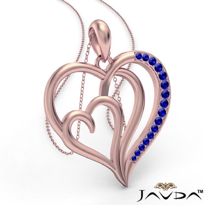 Triple Heart Pendant Necklace In 14k Rose Gold Round Sapphire (0Ct. tw.)