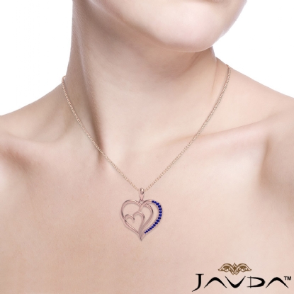 Expertly crafted this triple heart pendant necklace in 14k Rose Gold. This beautiful pendant adorn with shimmering round sapphire gemstone gradually set in a micro pave setting hang on 18 inch rolo chain that secures with a spring ring clasp.