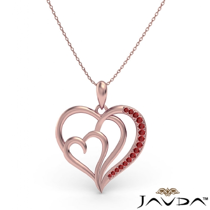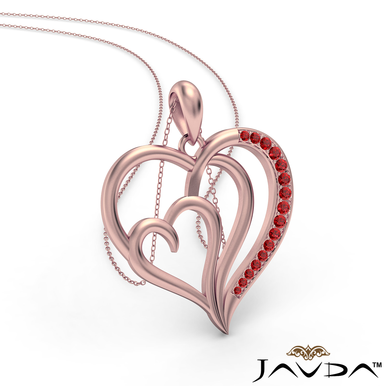 Expertly crafted this triple heart pendant necklace in 18k Rose Gold. This beautiful pendant adorn with shimmering round ruby gemstone gradually set in a micro pave setting hang on 18 inch rolo chain that secures with a spring ring clasp.