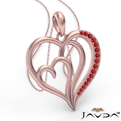 Triple Heart Pendant Necklace In 18k Rose Gold Round Ruby (0Ct. tw.)