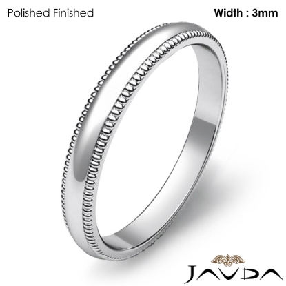 Mens Wedding 3mm Band Dome Milgrain Solid Ring Platinum 4.4g 5"