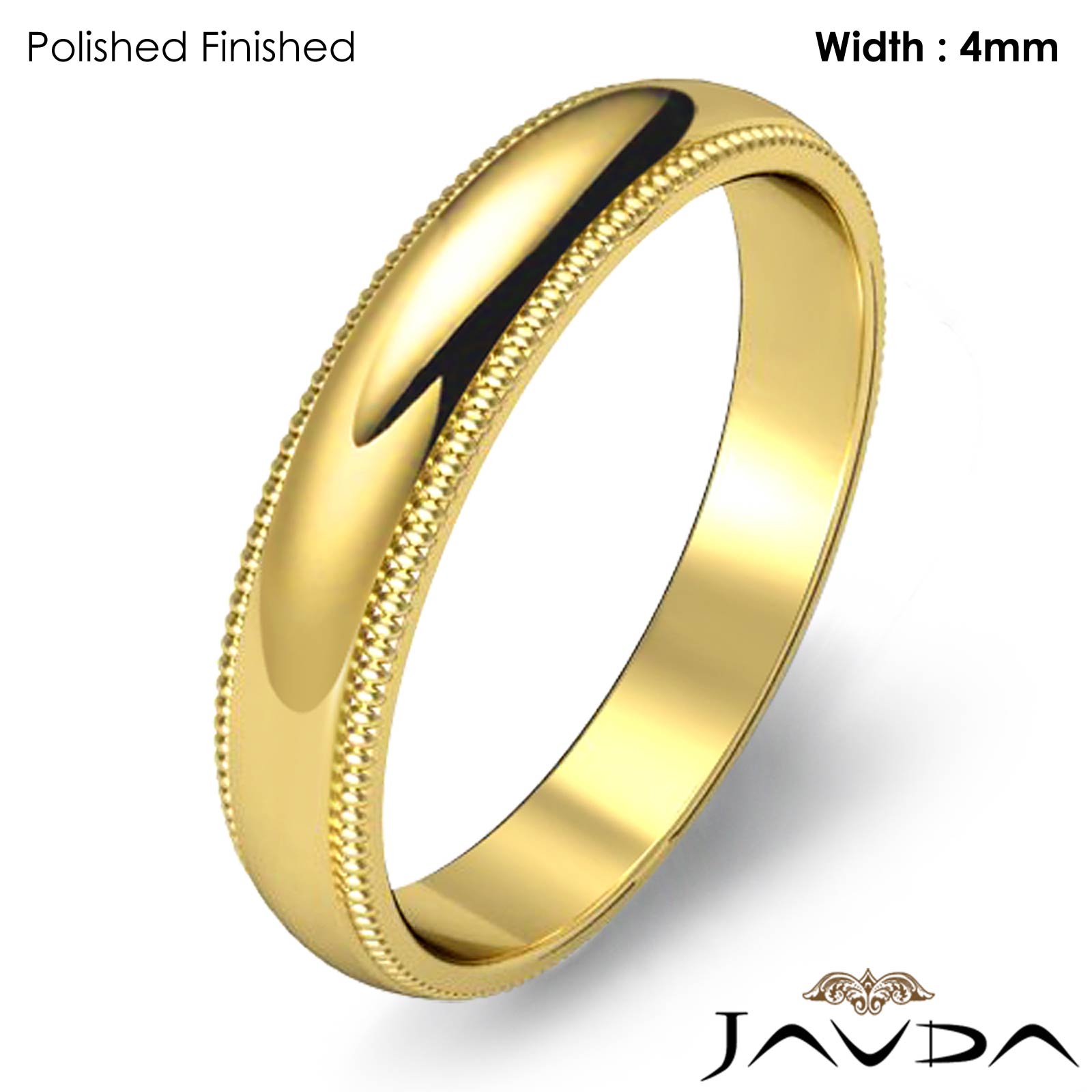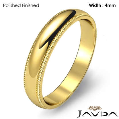 3.7 gram Men's 14k Gold Yellow Solid Wedding Band. Dome milgrain edge style band. Ring Size is 5". Width is 4mm. Available in high polish and matt finish.
