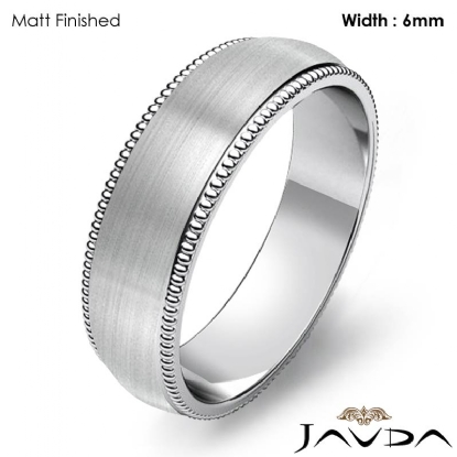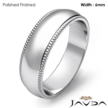 Solid Men Wedding Band Dome Milgrain Edge Ring 6mm Platinum 9.5g 5"