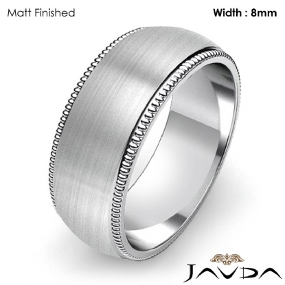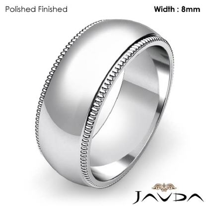 8mm Men Wedding Band Dome Milgrain Edge Solid Ring Platinum 14g 5"