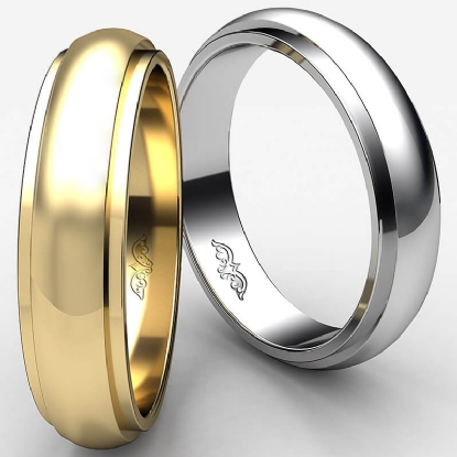 7.3 gram Men's 14k Gold Yellow Solid Wedding Band. Dome Step Down style band. Ring Size is 5". Width is 7.5mm. Available in high polish and matt finish.