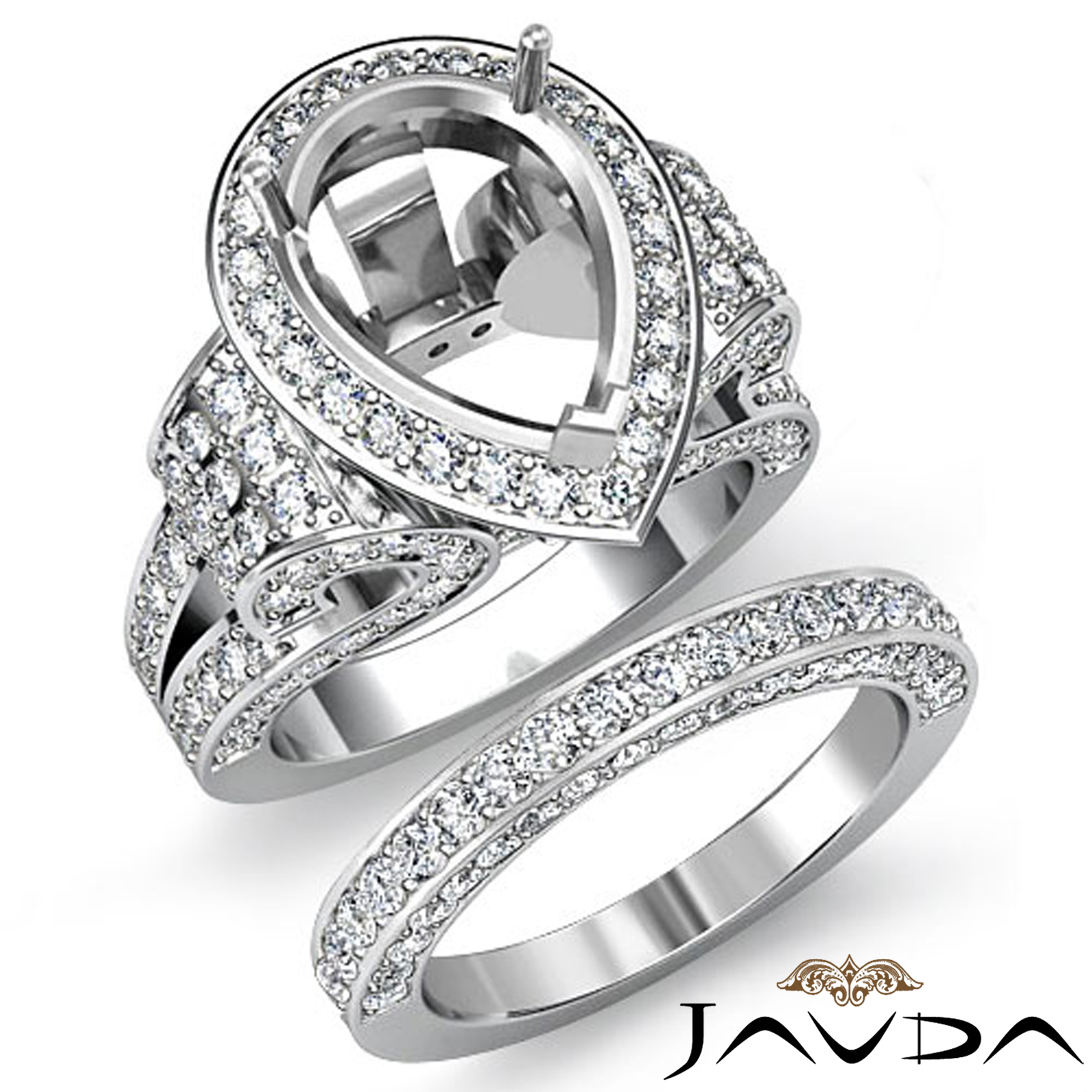 3.65 Ct Diamond Engagement Ring Pear Pave Bridal Sets Semi Mount 14K White Gold