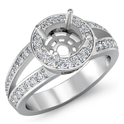 0.55 CT Diamond Engagement Ring Halo Setting Round Cut Semi Mount 14k White Gold
