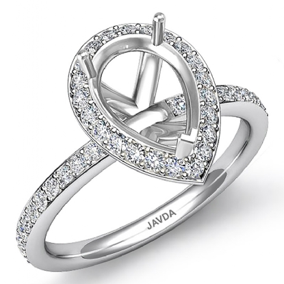 1 Ct Diamond Vintage Engagement Ring Pear Semi Mount Halo Setting 14k White Gold