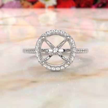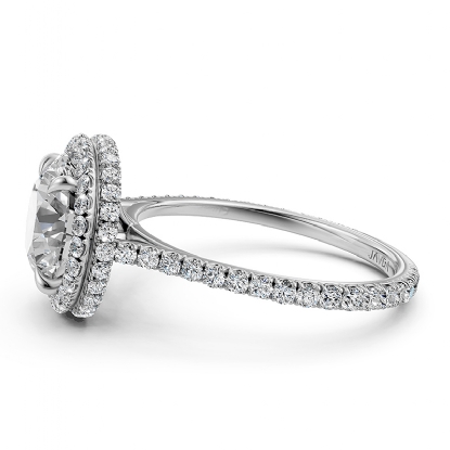 Make a striking addition to any outfit with this stunning double halo semi mount diamond engagement ring made in 14k white gold. This beautiful ring showcases 0.53 carat brilliant round lab-grown diamonds in a french U cut pave setting on a halo and cathedral shank. Also available in 14k & 18k white gold, yellow gold, rose gold and platinum 950. If you don't find your desired jewelry, please don't hesitate to contact our designer to make your custom jewelry design