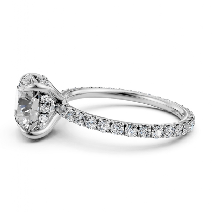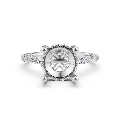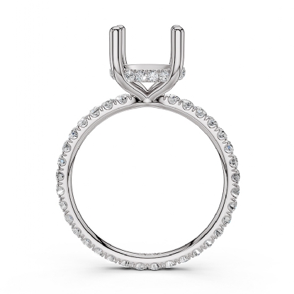 Hidden Halo French U Cut Pave Semi Mount Diamond Engagement Ring 14k Gold 0.60Ct