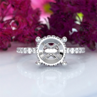 Add this new addition to your style hidden halo claw prong round semi mount diamond engagement ring handmade in 14k white gold. Showcases claw prong round semi mount with 0.60-carat round diamonds in a french U cut pave setting on halo and shank. Also available in 14k & 18k white gold, yellow gold, rose gold and platinum 950. If you don't find your desired jewelry, please don't hesitate to contact our designer to make your custom jewelry design