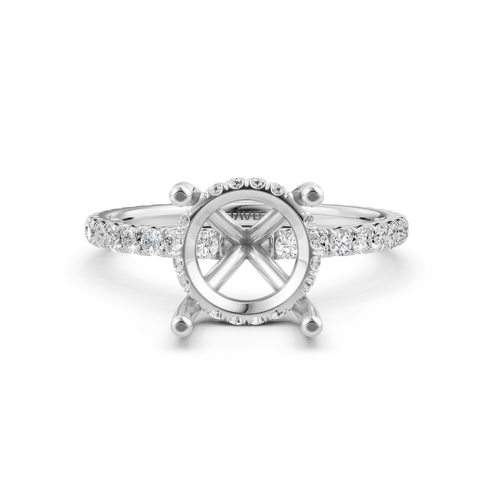 U Pave Hidden Halo Semi Mount Diamond Engagement Ring 14k White Gold 0.48 Ct