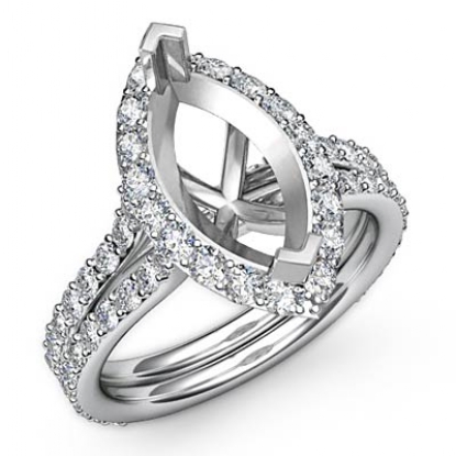 1.36 Ct Halo Setting Diamond Engagement Ring Marquise Semi Mount 14K White Gold