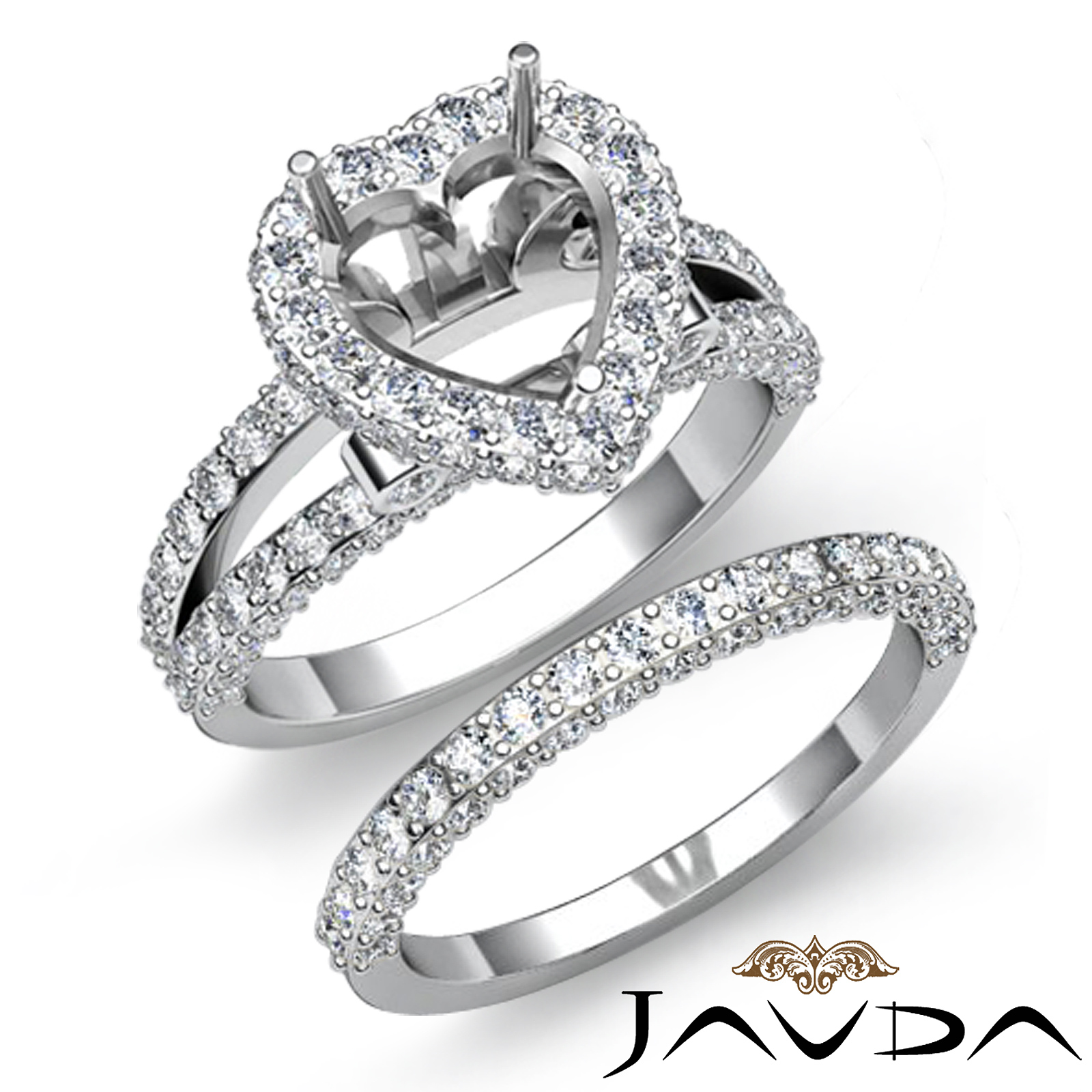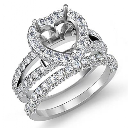 2.75Ct Pave Diamond Engagement Ring Heart Bridal Set 14K White Gold Semi Mount